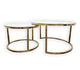 The Nesting Style Coffee Table in White Marble Top on Silver Stainless Steel is a sleek and sophisticated addition to any modern living room. This coffee table set includes two tables, one measuring 80cm in diameter and the other measuring 60cm in diameter, which can be nested together to save...